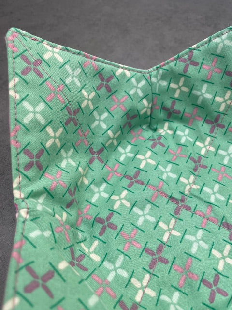 Handmade Reversible Cotton Bowl Cozy – Protect your hands and keep your food warm in style with this 100% cotton bowl cozy. Each cozy features two different cotton fabrics—one on each side—making it fully reversible for a fresh look anytime. Soft, washable, and reusable, it’s perfect for hot soup, oatmeal, or cold treats like ice cream. A practical and charming addition to any kitchen, and a thoughtful handmade gift.