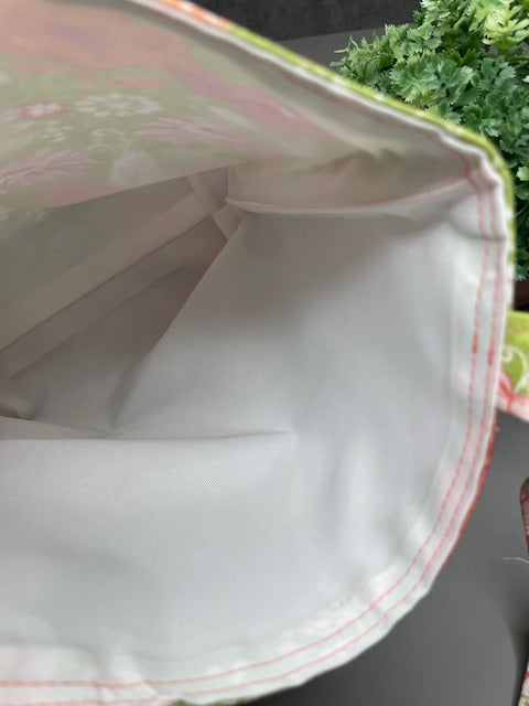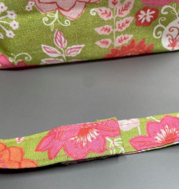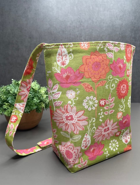 Keep your car neat and organized with this handmade car caddy. The exterior is made from durable cotton fabric, while the interior is lined with wipeable vinyl for easy cleaning. Designed with a convenient Velcro handle, it easily attaches around your car’s headrest for quick installation and removal. Use it as a small trash can, or as a handy holder for tissues, snacks, toys, or other on-the-go essentials. Practical, versatile, and stylish — the perfect accessory to keep your car clutter-free. Size 8" x 5.5" x 3"