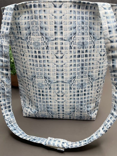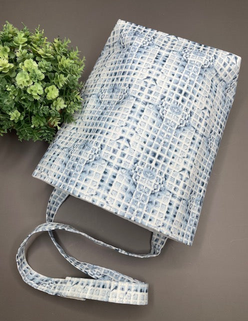 Keep your car neat and organized with this handmade car caddy. The exterior is made from durable cotton fabric, while the interior is lined with wipeable vinyl for easy cleaning. Designed with a convenient Velcro handle, it easily attaches around your car’s headrest for quick installation and removal. Use it as a small trash can, or as a handy holder for tissues, snacks, toys, or other on-the-go essentials. Practical, versatile, and stylish — the perfect accessory to keep your car clutter-free. Size 8" x 5.5" x 3"