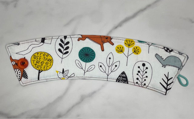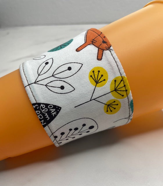 Handmade Cup Cozy with Button Closure – Keep your hands dry and your drinks stylish with this handcrafted cup cozy, designed to fit tall, tapered glasses and cups. Measuring 2 ¾" deep and 10" long, each cozy wraps securely around your drink with an elastic loop and button closure. Made with quality fabrics, it helps absorb condensation, reduces slipping, and adds a touch of charm to your beverage. A practical, reusable alternative to disposable sleeves—perfect for everyday use or as a thoughtful handmade gift.