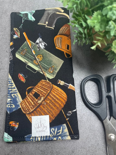 This versatile handmade case is crafted from soft cotton fabric with a layer of cotton batting for added protection. While perfect for keeping your glasses or sunglasses safe from scratches and bumps, it’s also handy for storing small essentials like a rotary cutter, crafting scissors, pens, or makeup brushes. Lightweight, padded, and compact, it easily slips into your bag or sits neatly on your desk or nightstand. A functional and charming accessory — whether for daily use or as a thoughtful handmade gift. 7" x 4" size.