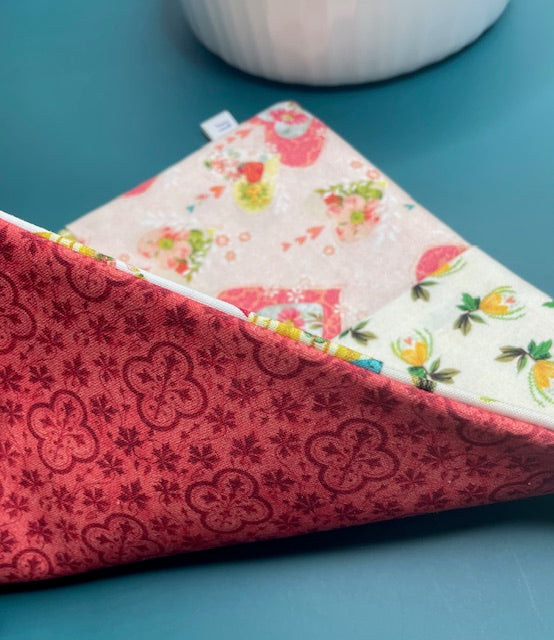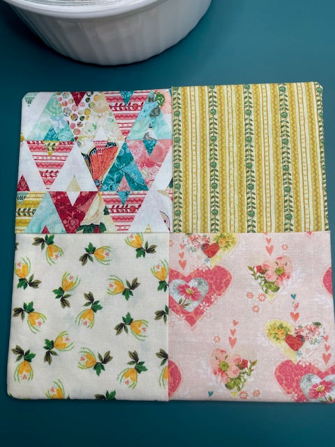 Handmade Hot Pads – Crafted by sewing machine, these hot pads are made with 100% cotton fabric and cotton batting for excellent heat protection. Perfect for placing hot dishes from the stovetop, oven, or microwave, they help protect your countertops and table surfaces from heat damage. Durable, functional, and stylish, each one is handmade with care—making them as beautiful as they are practical. 9" x 9" Square